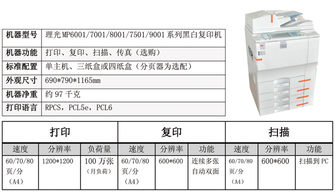 理光MP6001/7001/8001/7501/9001系列黑白复印机