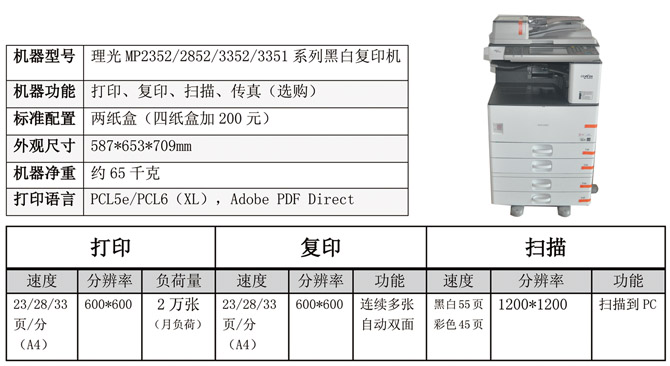 理光MP2352/2852/3352/3351系列黑白复印机